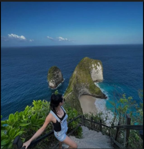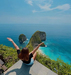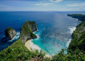 Kelingking Beach, also known as Kelingking, is one of the most iconic tourist destinations in Nusa Penida, Bali. It's famous for its T-Rex-like cliffs jutting out into the sea, as well as its beautiful white sand and crystal-clear waters.